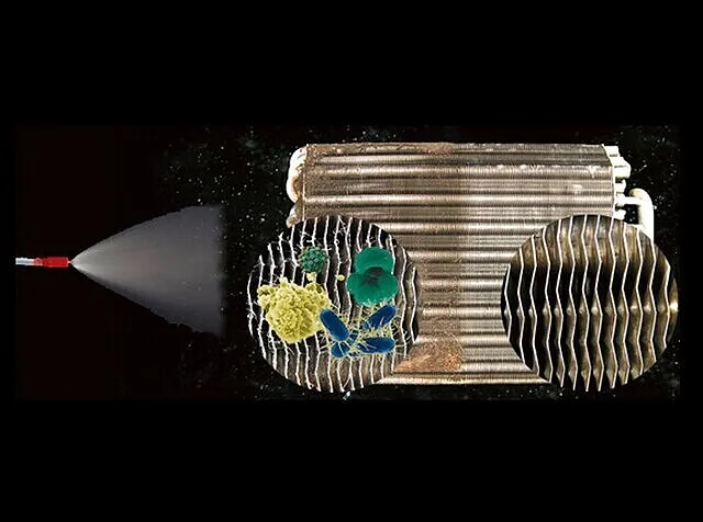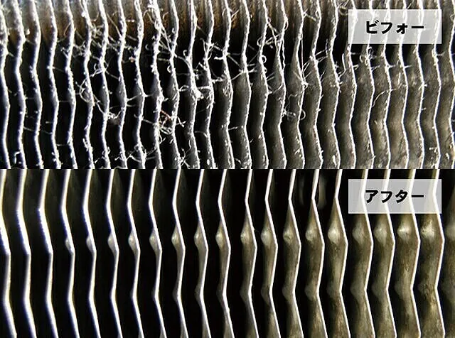 洗浄剤で、エバポレーターを丸洗いいたします。その後除菌コーティングをエバポレータに施工いたします。